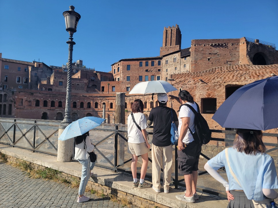Next, the team ascended Palatine Hill, where the professor explained that it is the birthplace of ancient Rome, where, according to legend, Romulus, the founder of Rome, established the city. By visiting the palace ruins and archaeological sites on Palatine Hill, the team gained insights into the early history and culture of the Roman Empire. Under the professor's guidance, they witnessed the magnificent remnants of ancient palaces, igniting their passion for the protection and activation of architectural heritage.